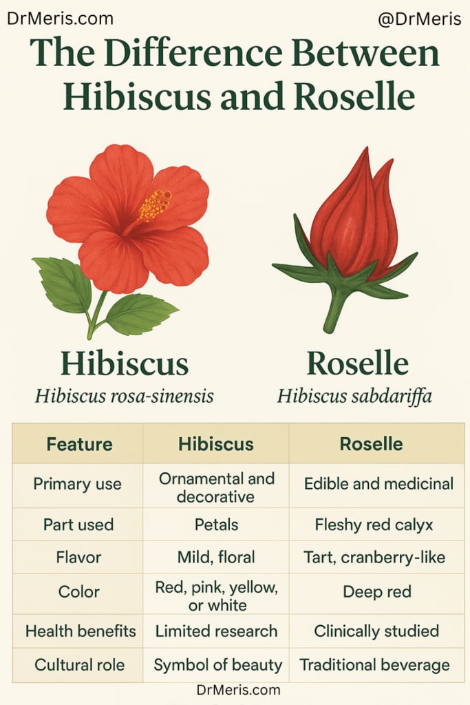 Understanding this part of the difference between hibiscus and roselle explains why one is mainly decorative while the other is a functional superfood.
